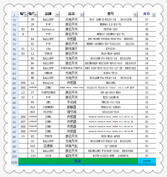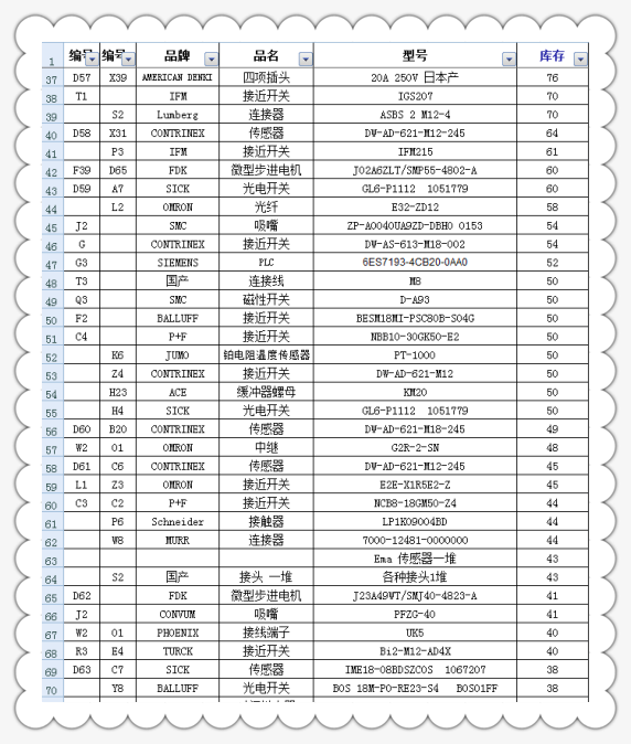 公司部分現(xiàn)貨主營(yíng)產(chǎn)品明細(xì)表